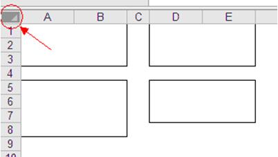 單擊行和列交叉處,可以選中整個Excel工作表,相當于ctrl+A全選工作表,如下圖所示。全選后,再單擊“合并及居中”按鈕就可以批量全部拆分Excel工作表的所有合并單元格。